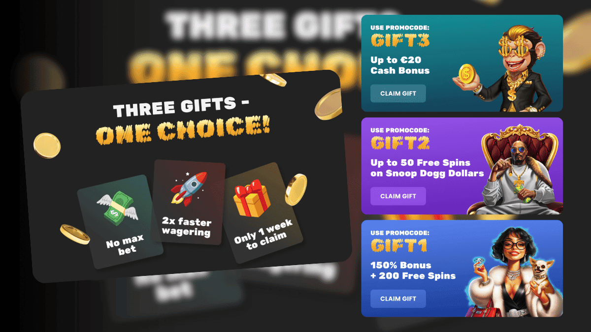At Chipstars, your loyalty pays off – and now it’s time to choose your reward! Our exclusive promotion offers three thrilling gift options with bonus codes you can activate straight from your inbox: Free Spins, 1.5x Bonus or Cash – you decide!